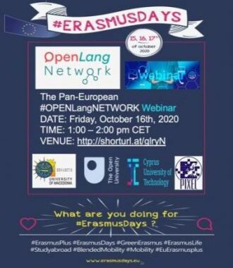 FREE Online event in partnership with the International Conference “The Future of Education” PIXEL and the OPENLang Network consortium welcomes you to the first Multiplier Event of the EU funded project OPENLang Network [Open Languages & Cultures Network], entitled: “Connecting Erasmus+ mobility participants in Open Language Learning Environments that promote linguistic and cultural awareness” Join